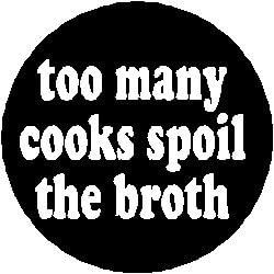Too many cooks in the kitchen spoil the broth too many cooks in the kitchen. Maybe you would like to learn more about one of these?